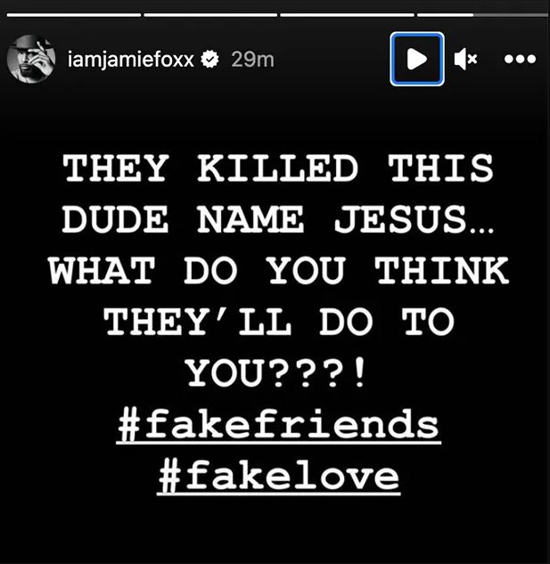 Perhaps one of the most common iterations of vague-posting are social media posts pertaining to the concept of “fake friends,” which Foxx seemingly did just that earlier in August when posting to his Instagram stories about the betrayal of Jesus Christ as depicted in the Bible and accompanying it with the hashtags “#FakeFriends” and “#FakeLove.”