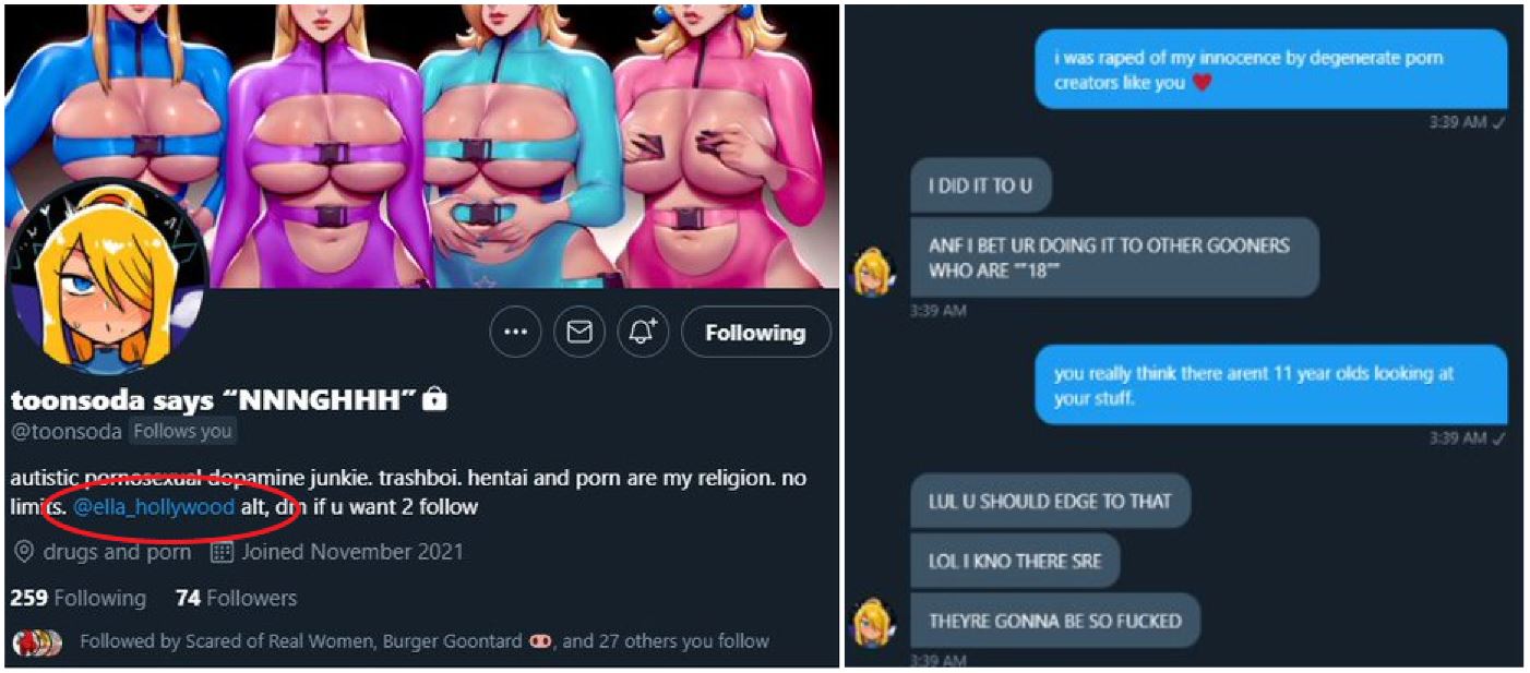Of particular concern with respect to this bio/header of the since-deleted alt account allegedly operated by Hollywood is the mentioning of “no limits,” which is reportedly a common dog whistle among pedophiles to signal one’s openness to conversing with minors or willingness to share/accept illicit images of children.